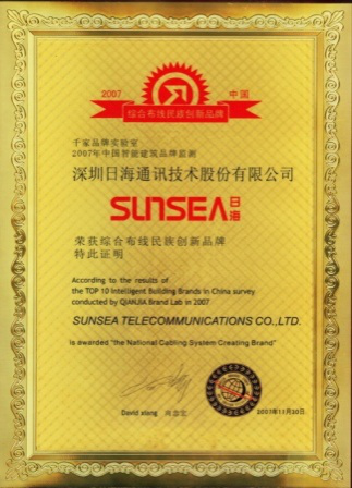 2007年11月29日~30日,亚洲城公司智能综合布线受邀前往上海光大会展中心酒店,参加由千家网筹办的“2007年第八届中国国际建筑智能化峰会暨颁奖典礼”,获得了“布线民族创新品牌”特别奖项。